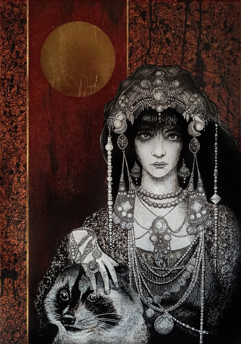 Neralis erstellt Dark-Fantasy-Illustrationen mit Fantasywesen, Fanart oder eigenen Charakteren. Diese Werke sind inspiriert durch gotische Buntglasfenster.
