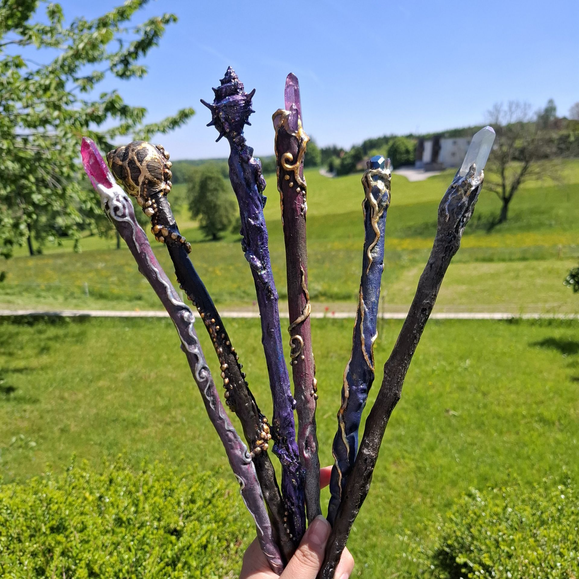 Zauberstäbe, Holzbrennereien, Illustrationen.
