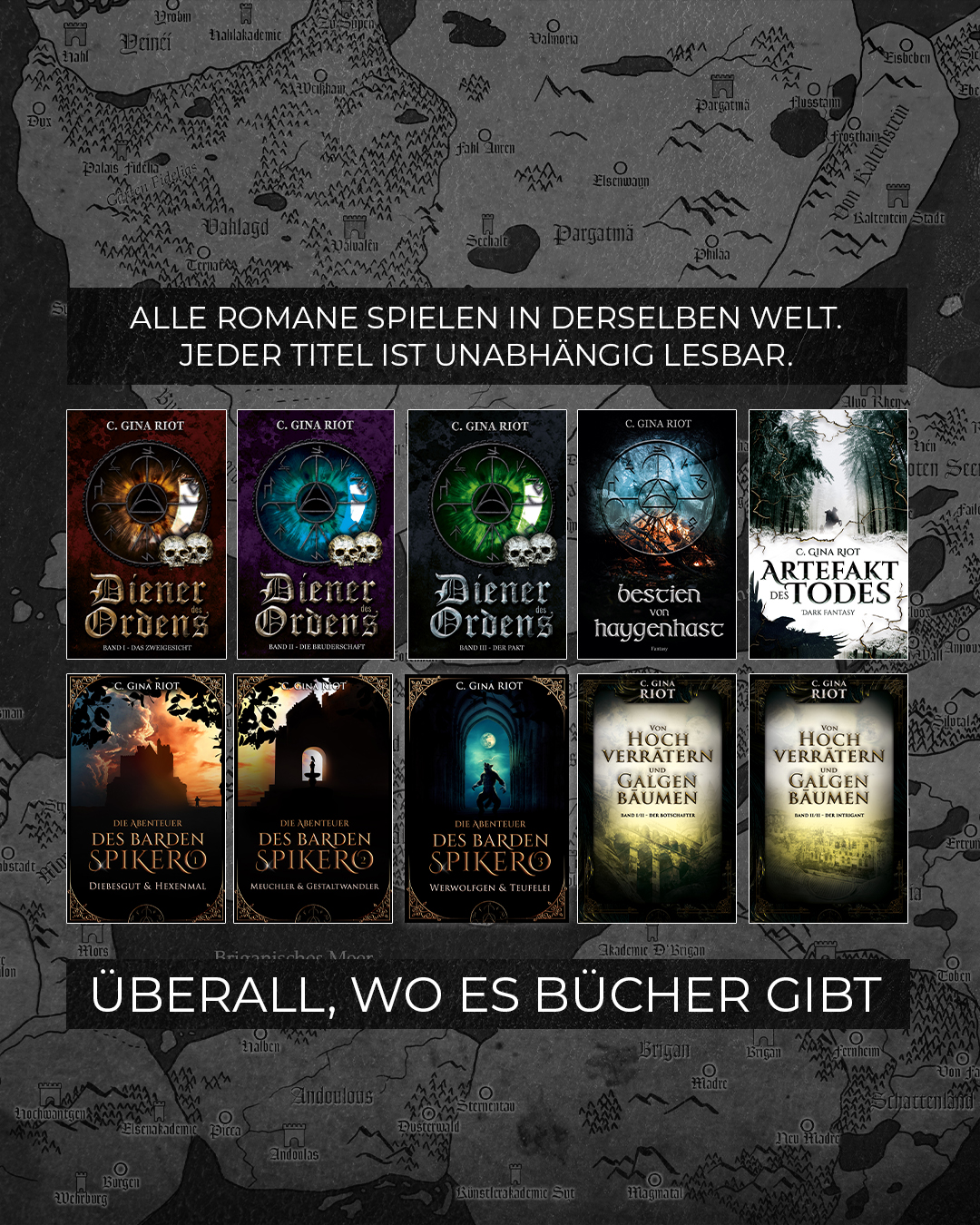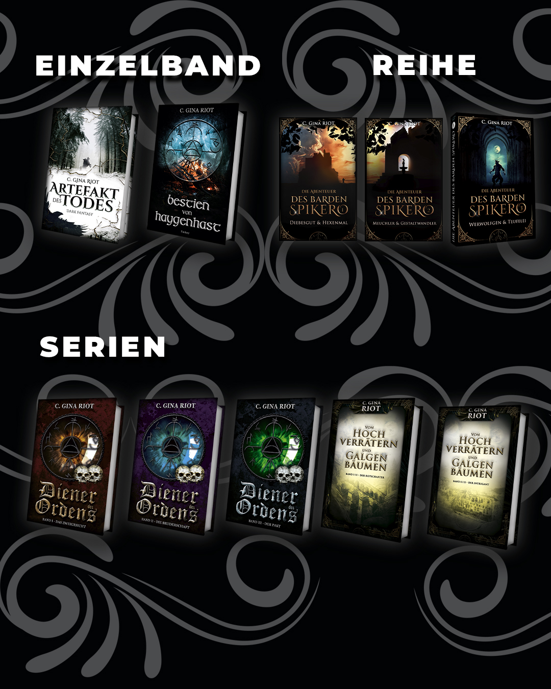 C. Gina Riot schreibt facettenreiche Charaktere mit Tiefgang, Geschichten mit unerwarteten Wendungen und erschütternden Plot Twists. Einige Titel sind düsterer, andere glänzen mit Humor. Doch allesamt spielen in derselben Welt.